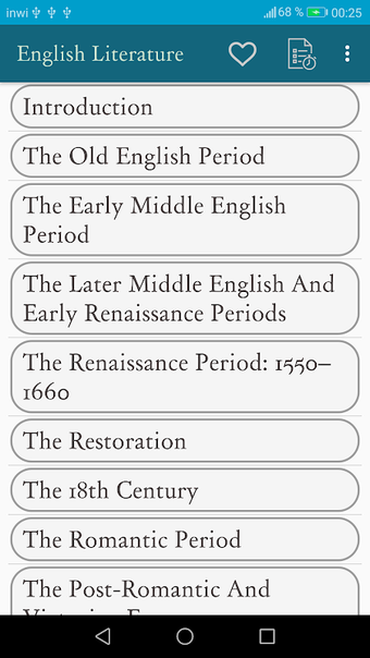 مع هذا التطبيق، يمكن للمستخدمين استكشاف جوانب مختلفة من الأدب الإنجليزي، بما في ذلك الحركات الأدبية والأنواع وأنماط النصوص. يغطي مجموعة واسعة من الفترات، بدءًا من الفترة الإنجليزية القديمة حتى القرن الحادي والعشرين. يتم شرح كل فترة بالتفصيل، مما يوفر رؤى قيمة حول الأعمال الأدبية والسياق الثقافي للوقت.